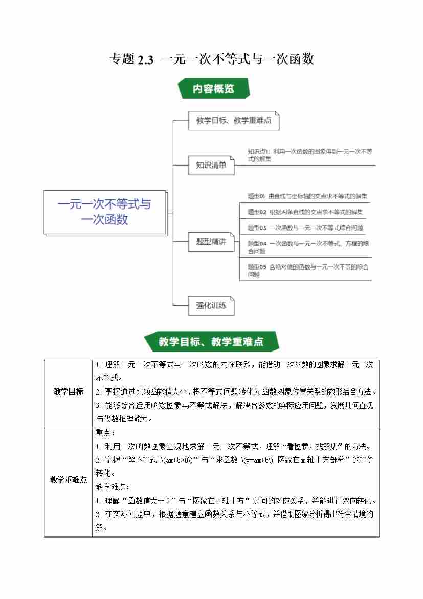 专题2.3 一元一次不等式与一次函数(1大考点5大题型强化训练)(高效培优讲义)(原卷版)
