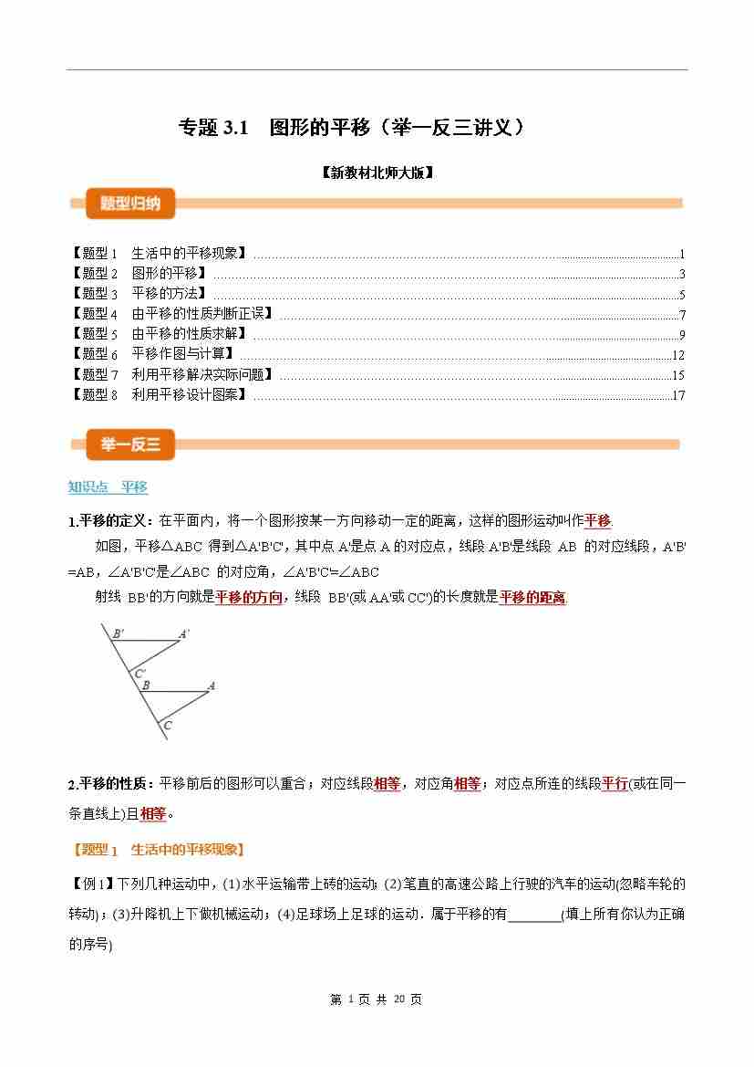 专题3.1 图形的平移(举一反三讲义)(解析版)
