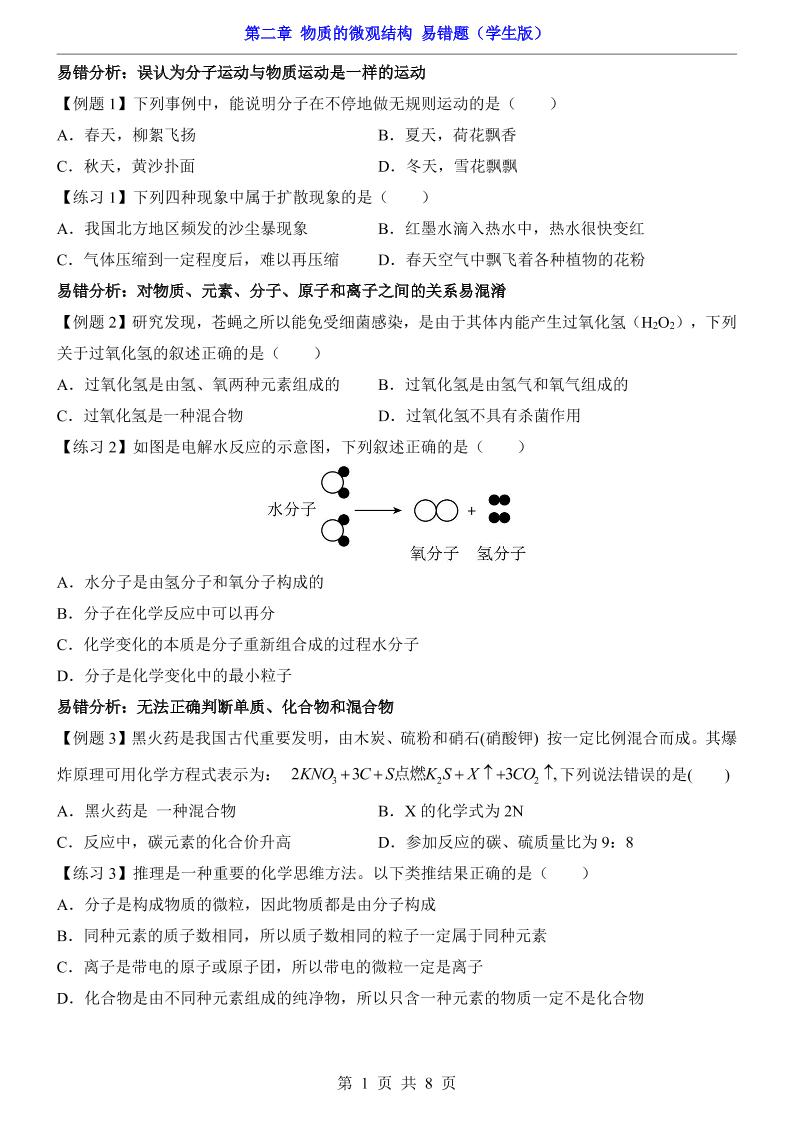 第2章 物质的微观结构(易错题)