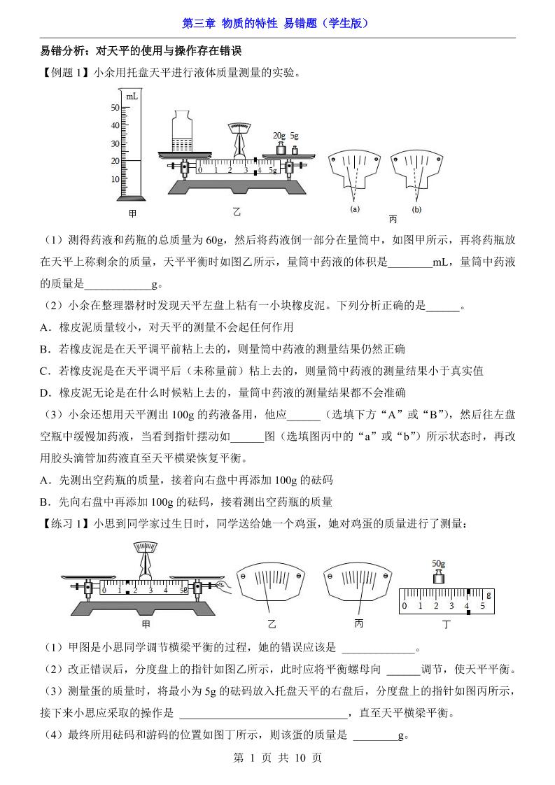 第3章 物质的特性(易错题)