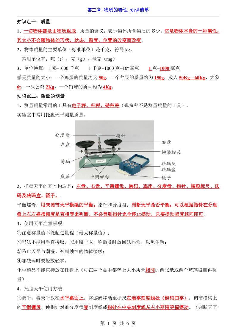 第3章 物质的特性(知识清单)1