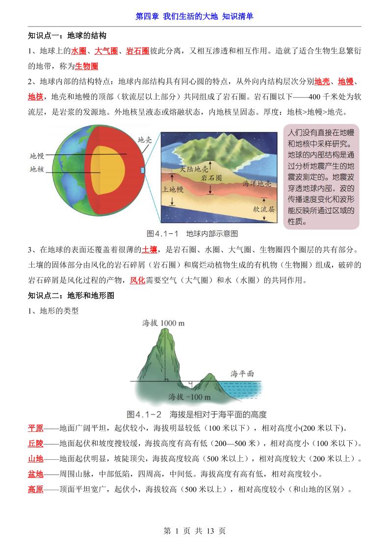 第4章 我们生活的大地(知识清单)