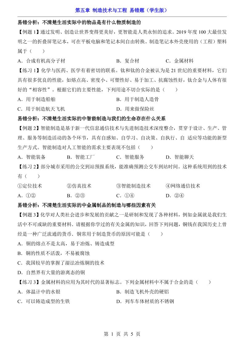 第5章 制造技术与工程(易错题)