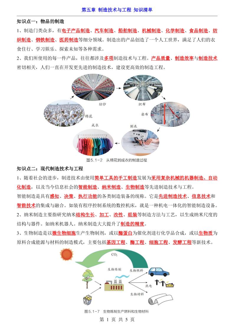 第5章 制造技术与工程(知识清单)