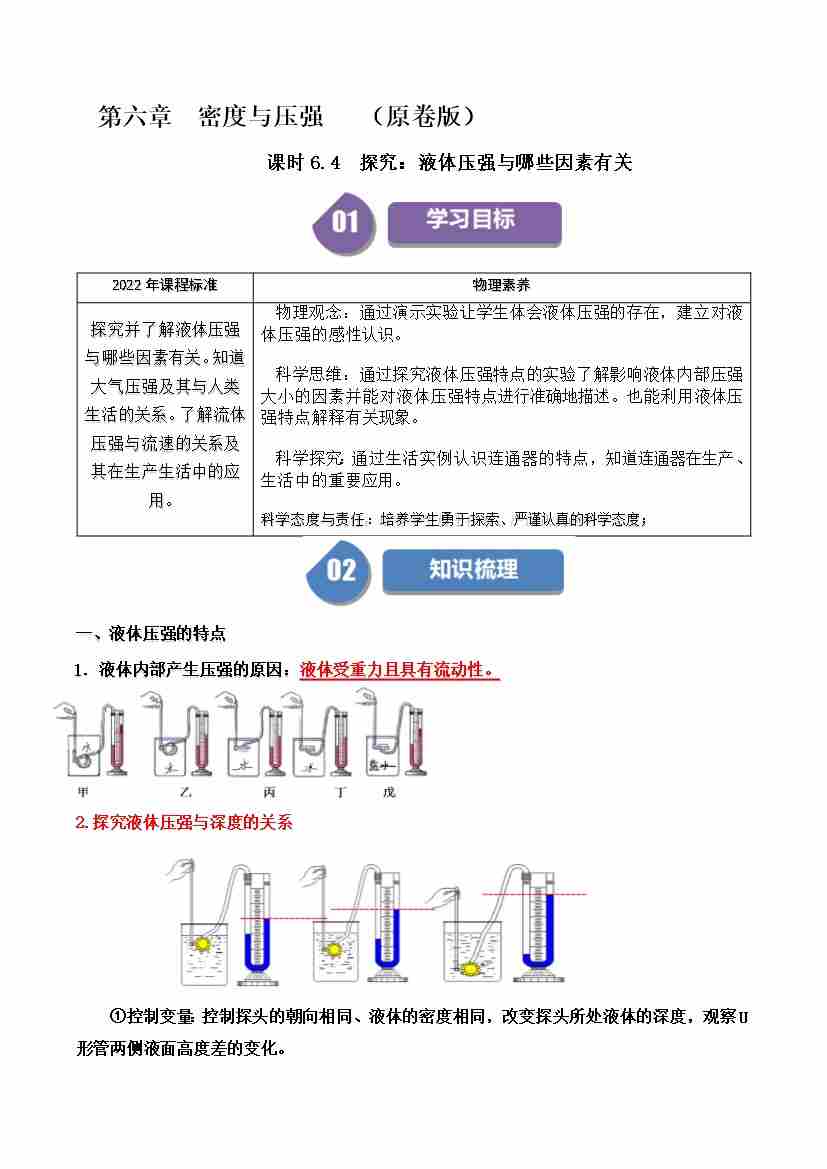 课时6.4.探究:液体压强与哪些因素有关(学生版)
