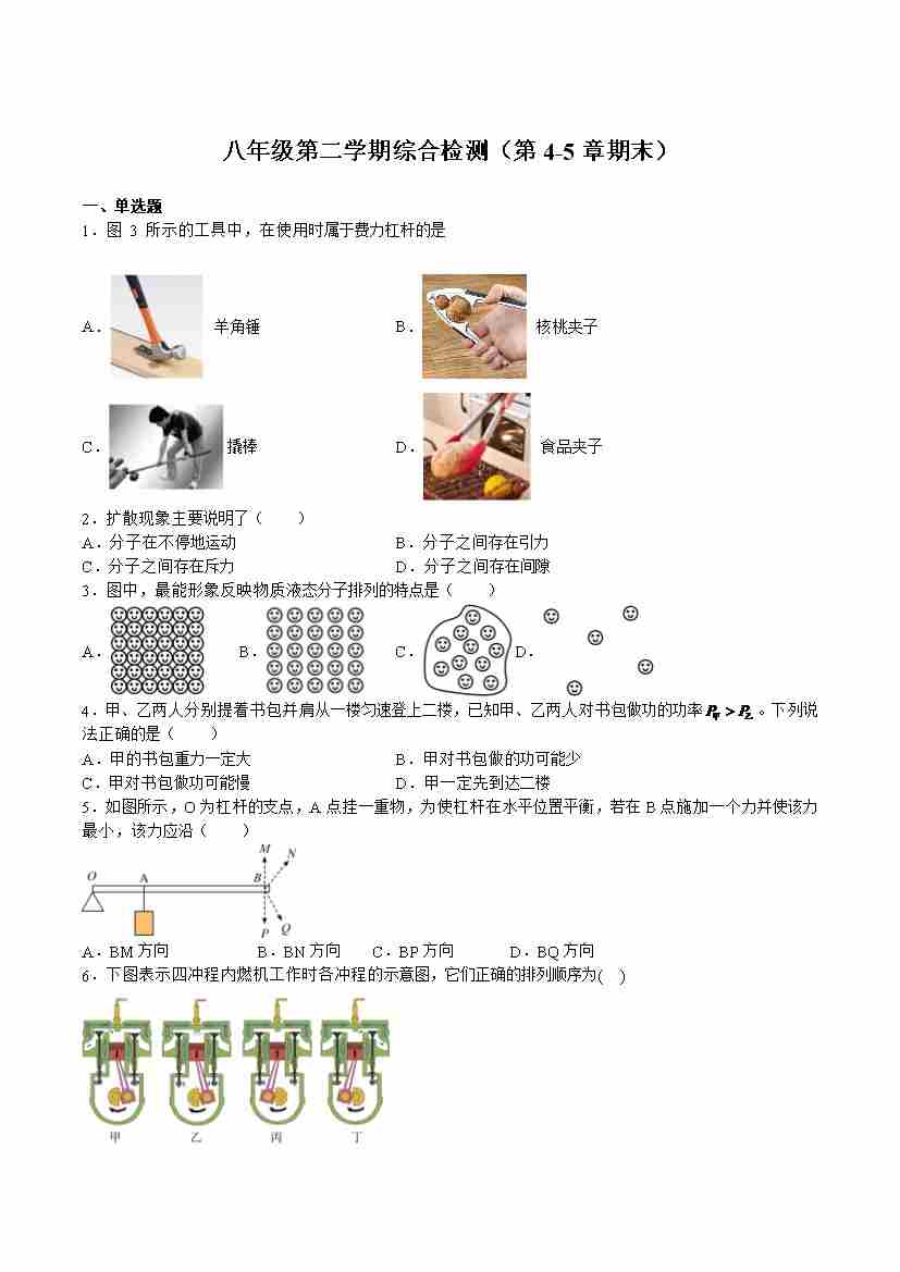 八年级第二学期综合检测(第4-5章期末)(原卷版)
