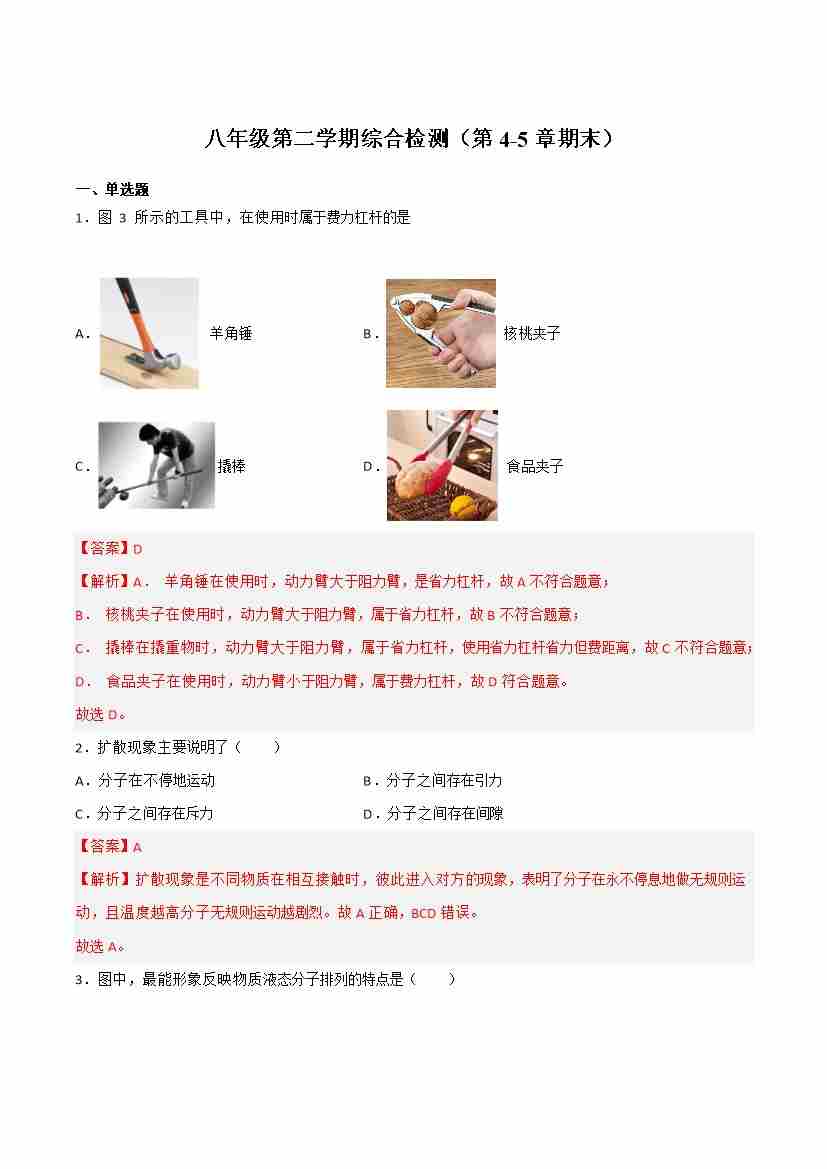 八年级第二学期综合检测(第4-5章期末)(解析版)