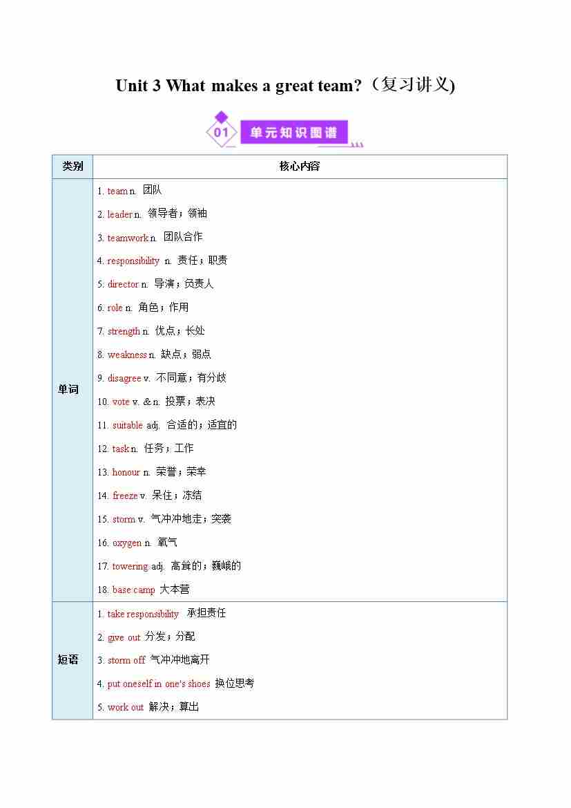 Unit 3 What makes a great team(复习讲义)(解析版)