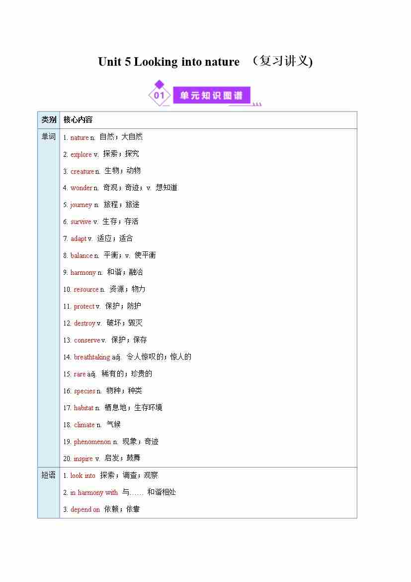 Unit 5 Looking into nature(复习讲义)(解析版)