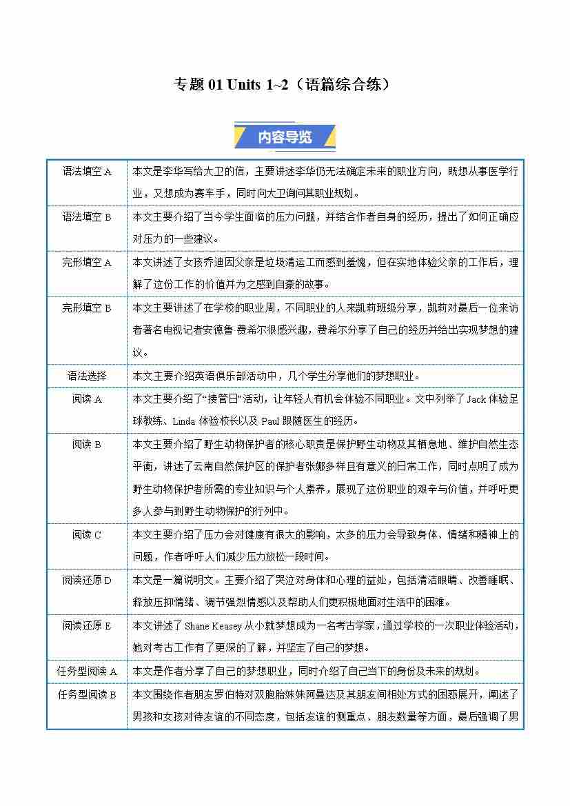 专题01 Units 1~2(语篇综合练)(原卷版)
