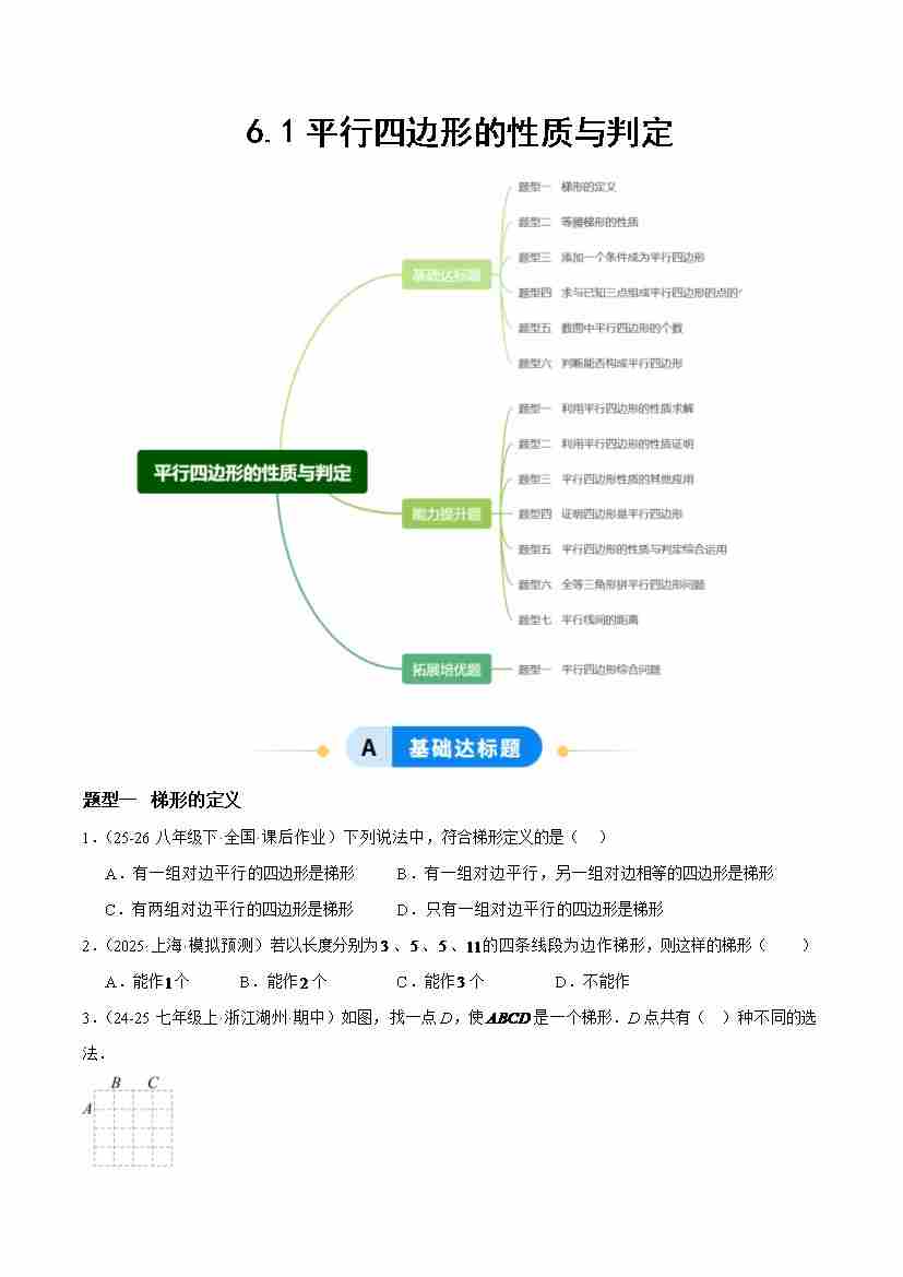 6.1平行四边形的性质与判定(题型专练)(原卷版)