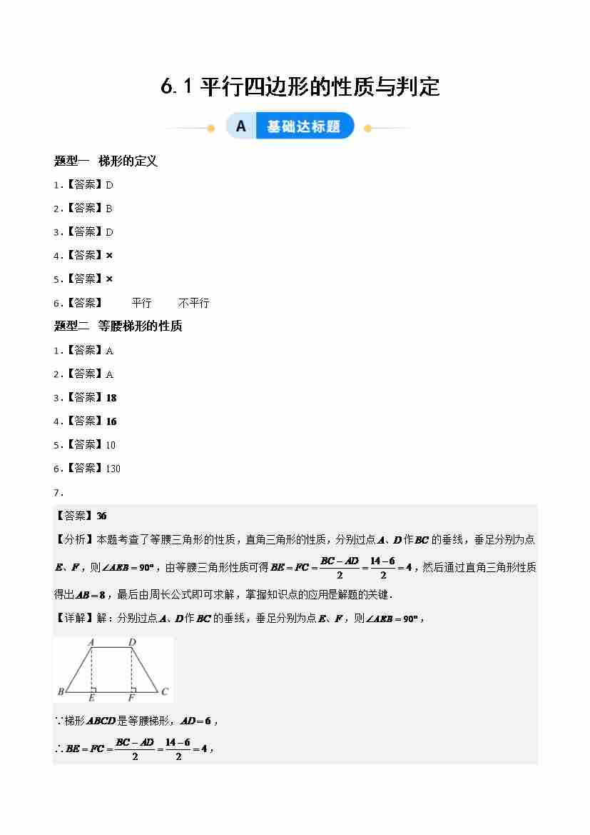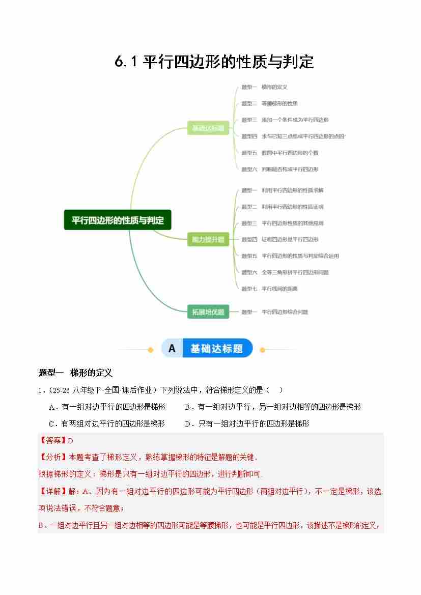 6.1平行四边形的性质与判定(题型专练)(答案版)