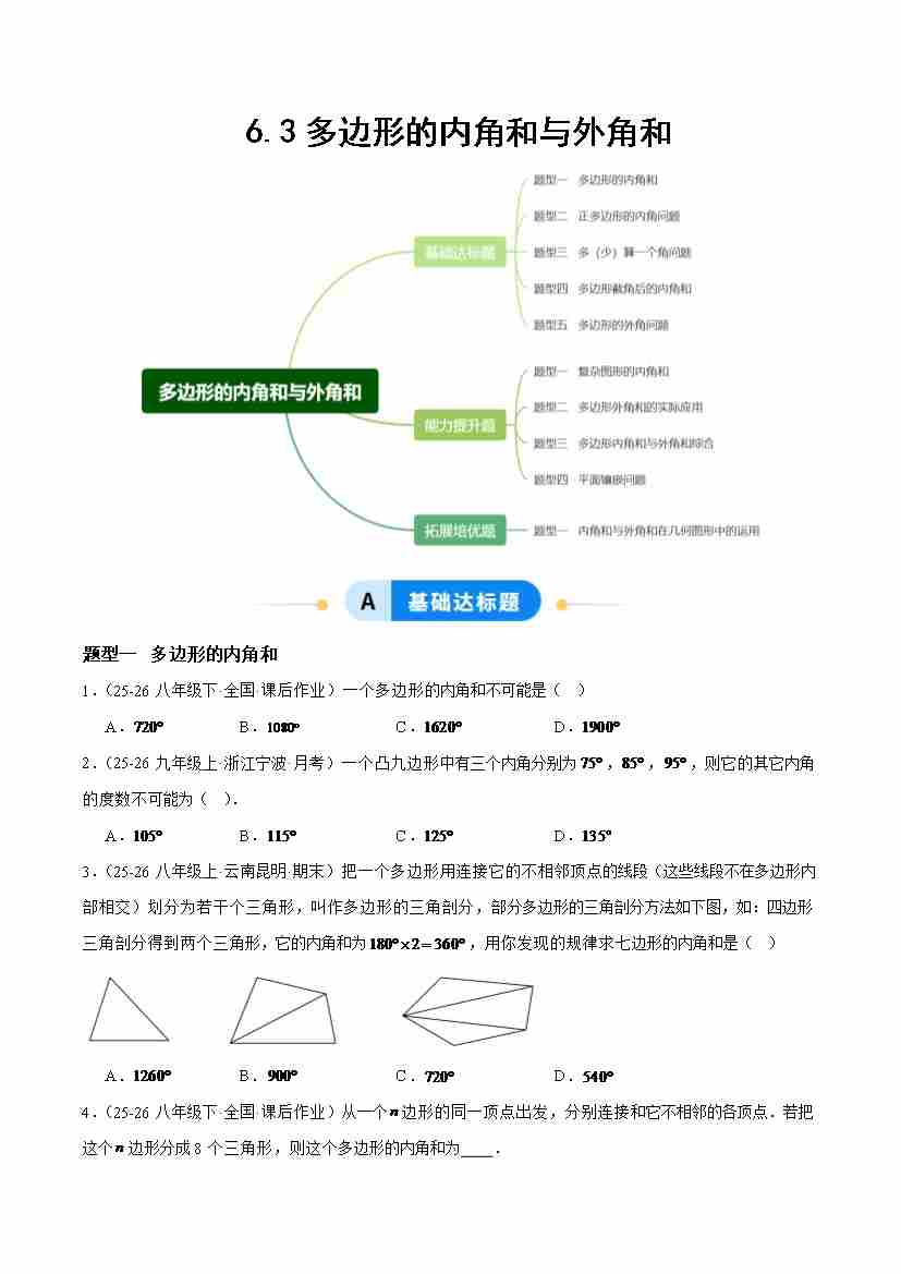 6.3多边形的内角和与外角和(题型专练)(原卷版)