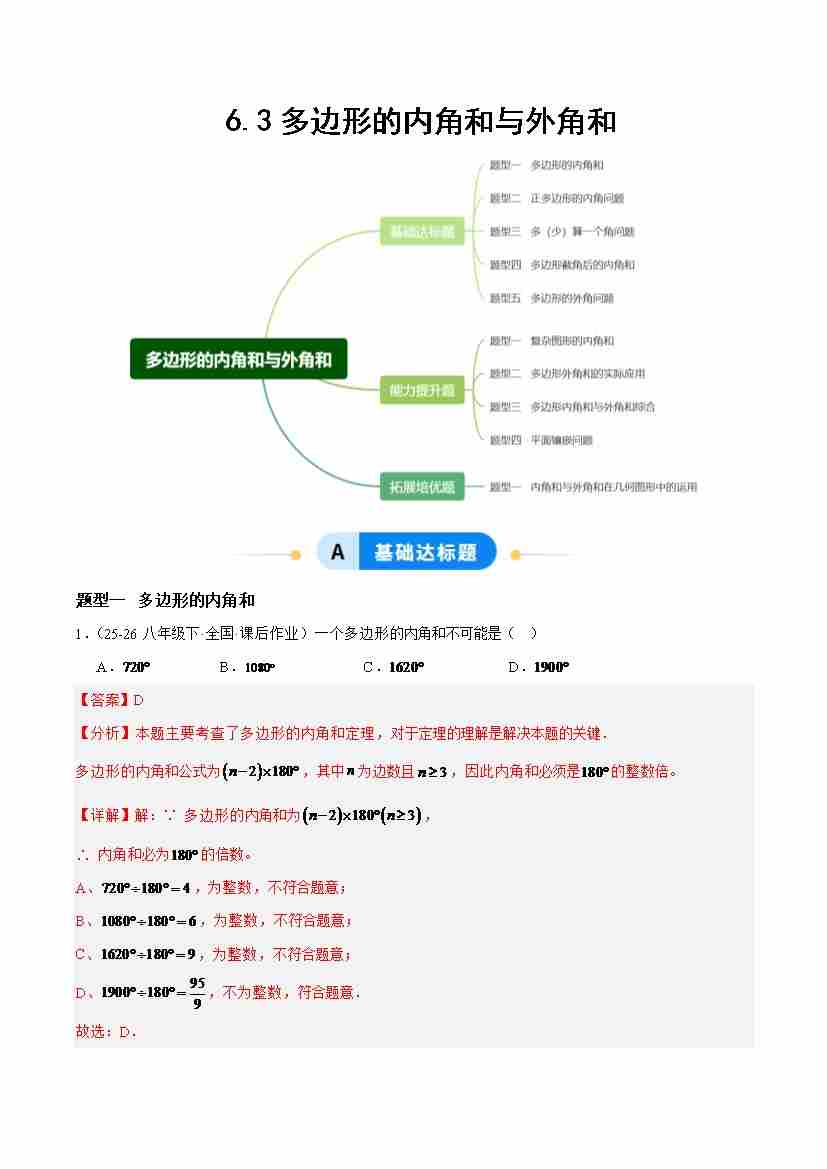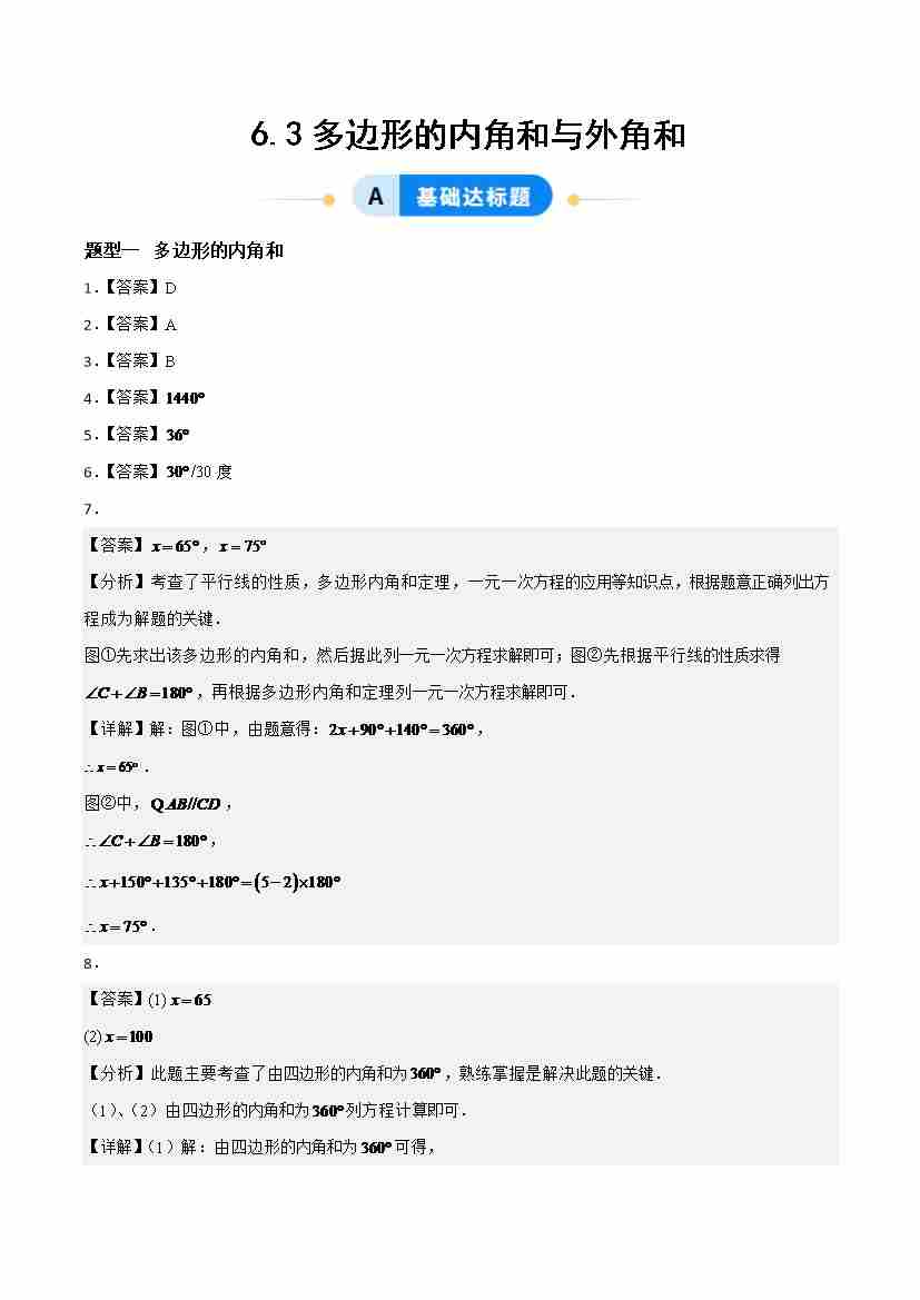 6.3多边形的内角和与外角和(题型专练)(答案版)