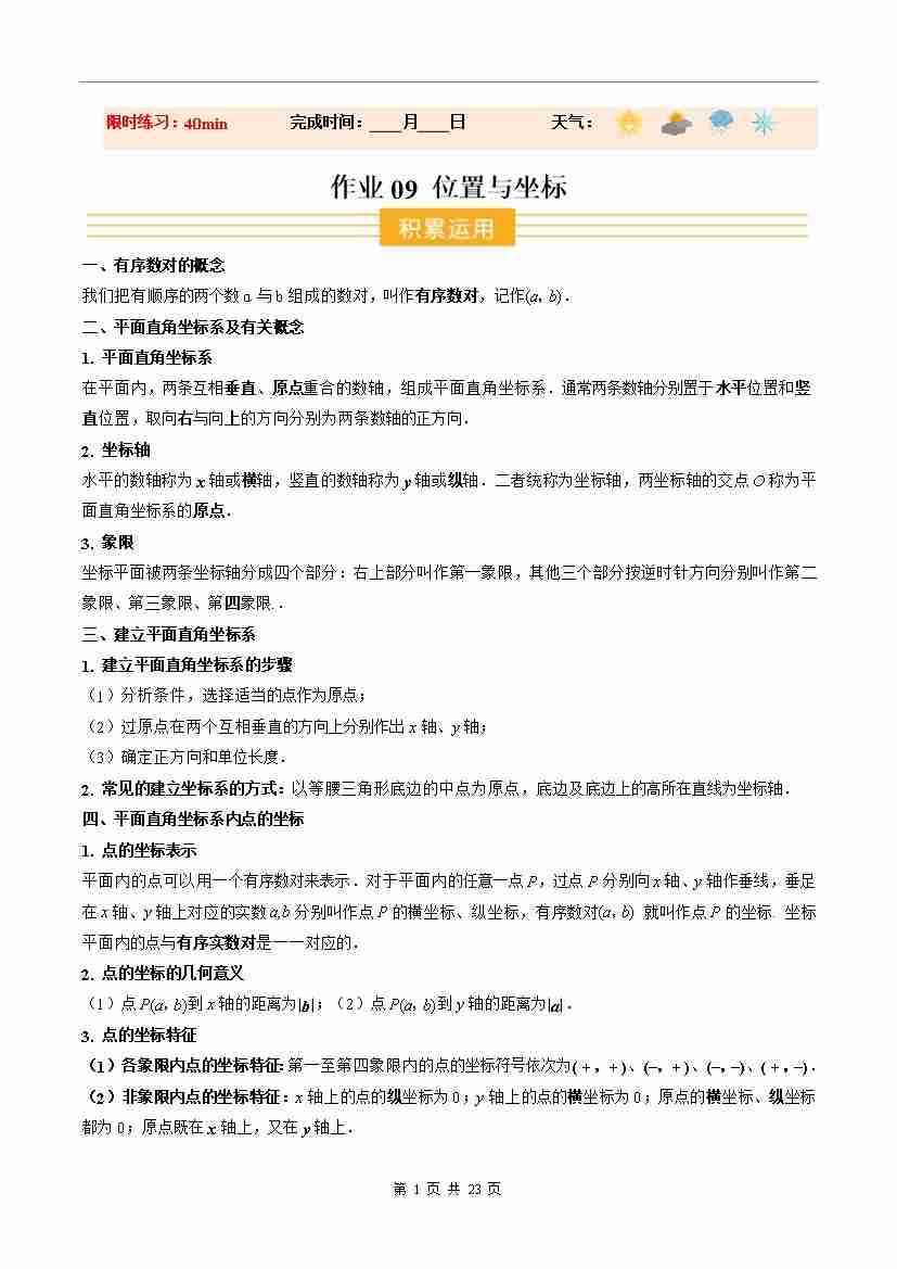 ③寒假培优练-专题09 位置与坐标(巩固培优)(教师版)-2026年八年级数学寒假衔接讲练 (北师大-新教材)