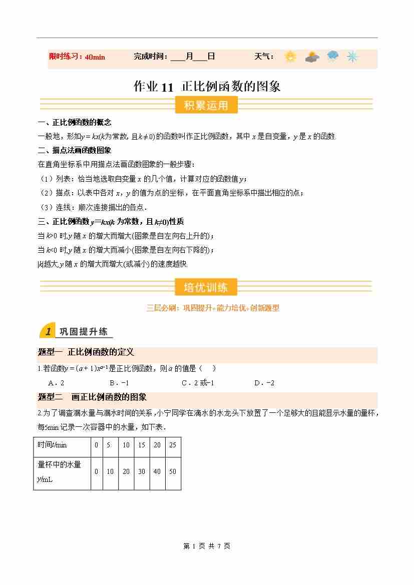 ③寒假培优练-专题11 正比例函数的图象(巩固培优)(学生版)-2026年八年级数学寒假衔接讲练 (北师大-新教材)