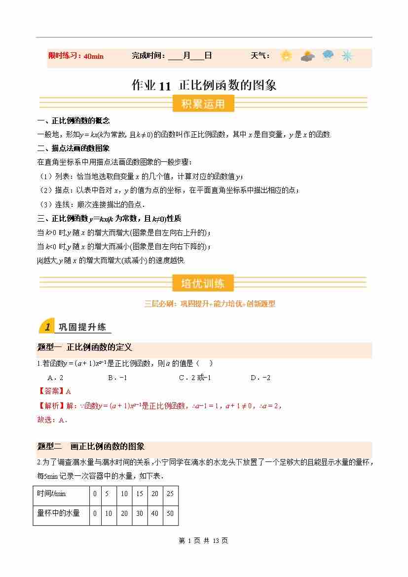 ③寒假培优练-专题11 正比例函数的图象(巩固培优)(教师版)-2026年八年级数学寒假衔接讲练 (北师大-新教材)