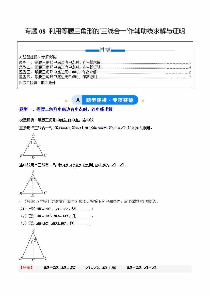 专题08 利用等腰三角形的'三线合一'作辅助线求解与证明(4大题型)(专项训练)(解析版)