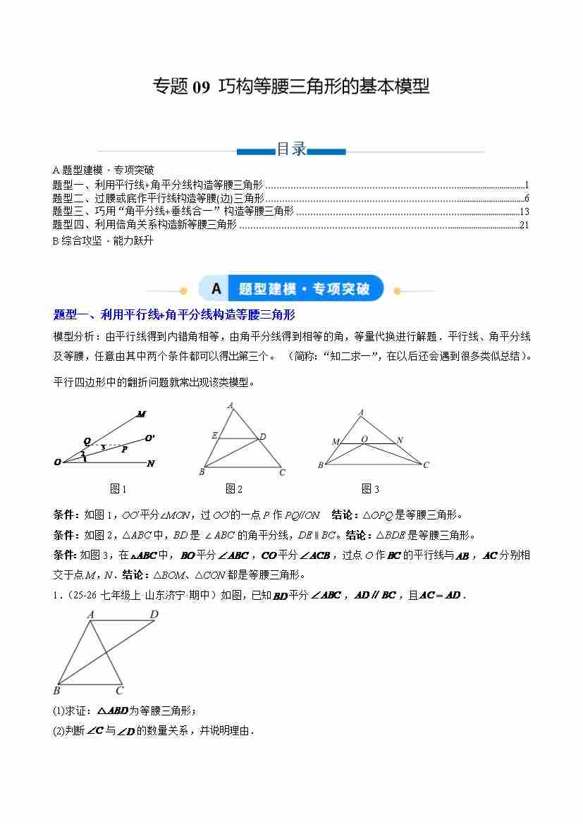 专题09 巧构等腰三角形的基本模型(4大题型)(专项训练)(原卷版)