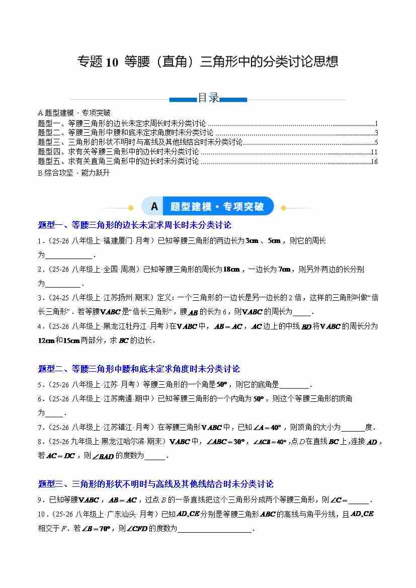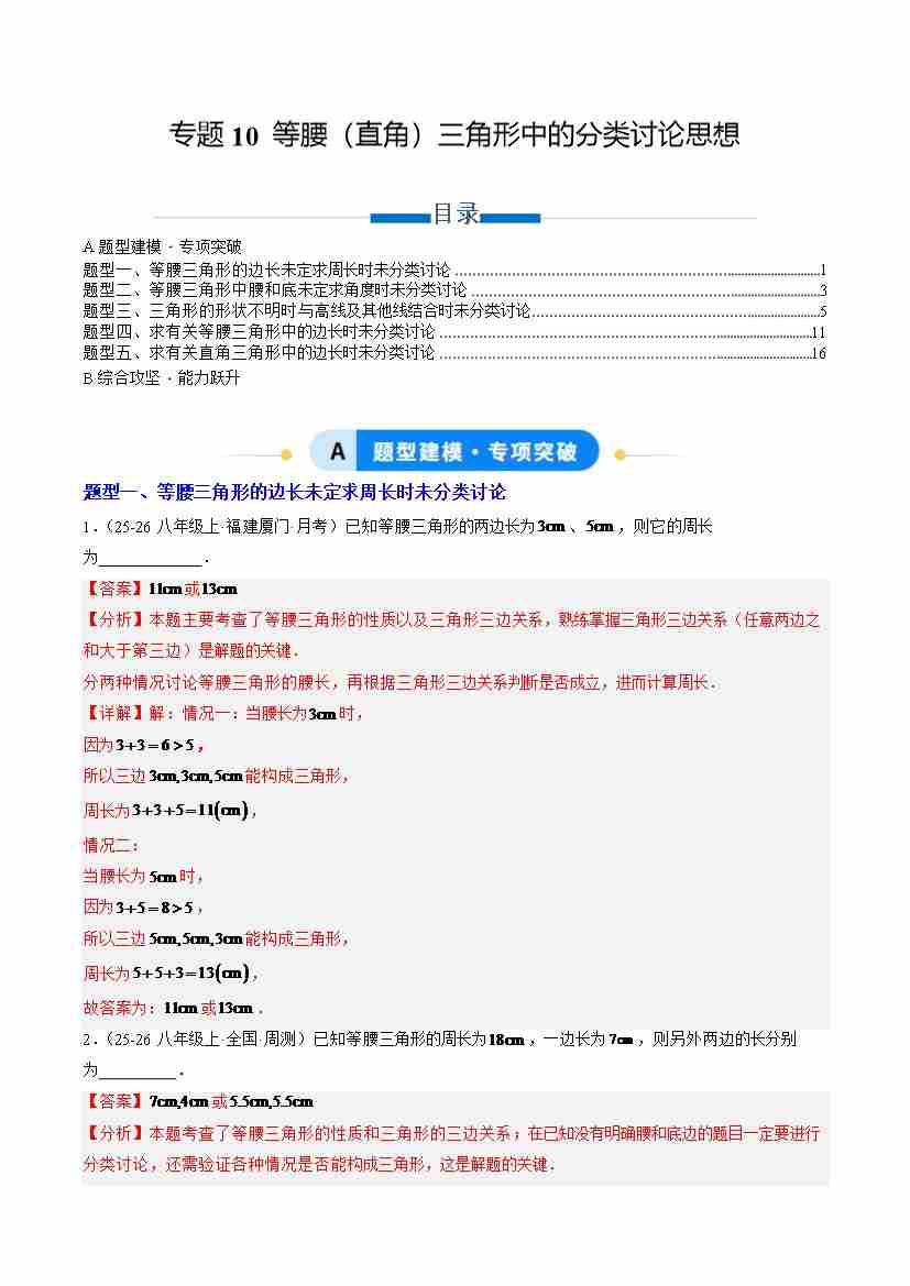 专题10 等腰(直角)三角形中的分类讨论思想(5大题型)(专项训练)(解析版)