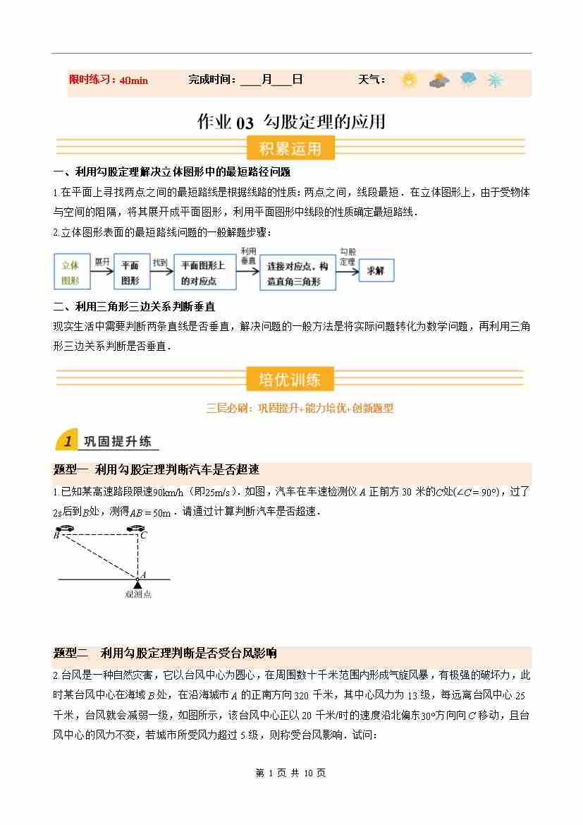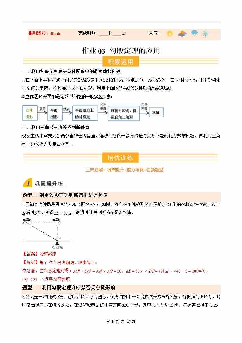 ③寒假培优练-专题03 勾股定理的应用(巩固培优)(学生版)-2026年八年级数学寒假衔接讲练 (北师大-新教材)