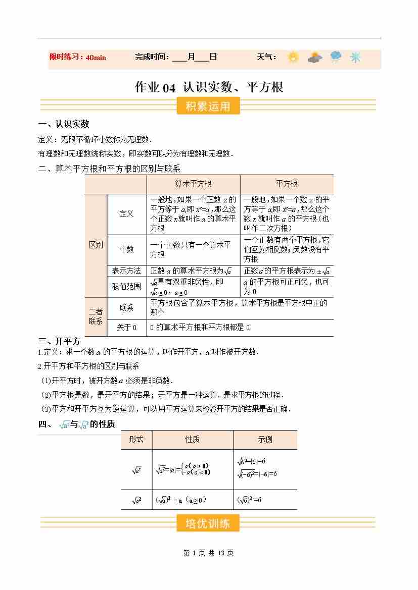 ③寒假培优练-专题04 认识实数、平方根(巩固培优)(学生版)-2026年八年级数学寒假衔接讲练 (北师大-新教材)
