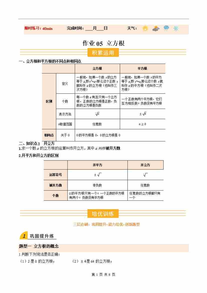 ③寒假培优练-专题05 立方根(巩固培优)(学生版)-2026年八年级数学寒假衔接讲练 (北师大-新教材)