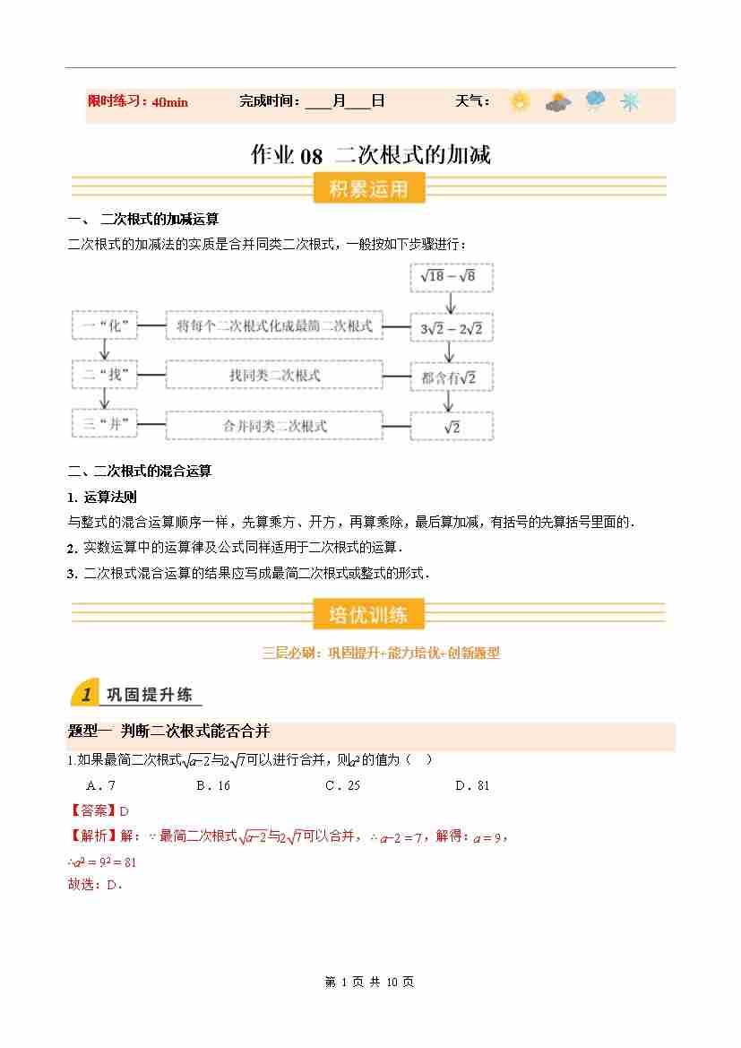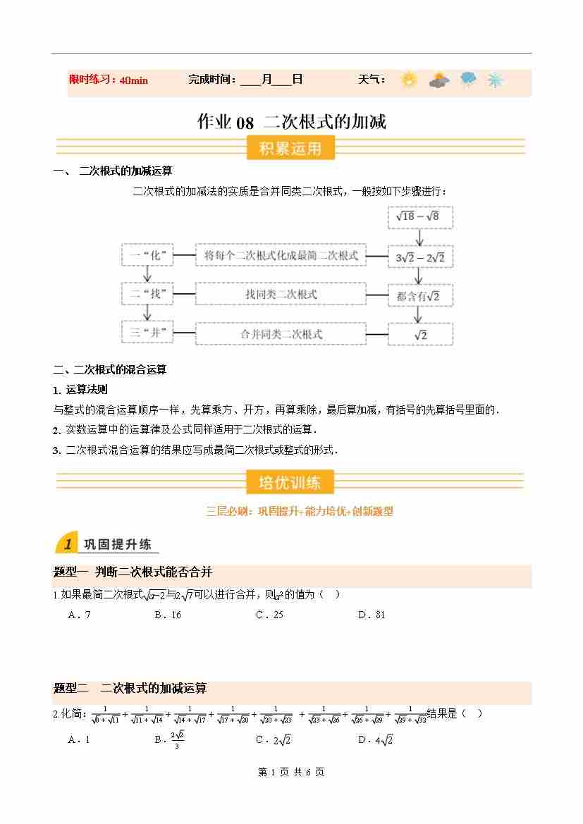 ③寒假培优练-专题08 二次根式的加减(巩固培优)(学生版)-2026年八年级数学寒假衔接讲练 (北师大-新教材)