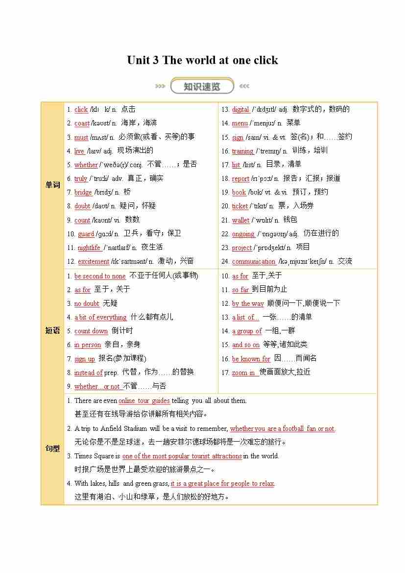 Unit 3 The world at one click(知识清单)(答案版)
