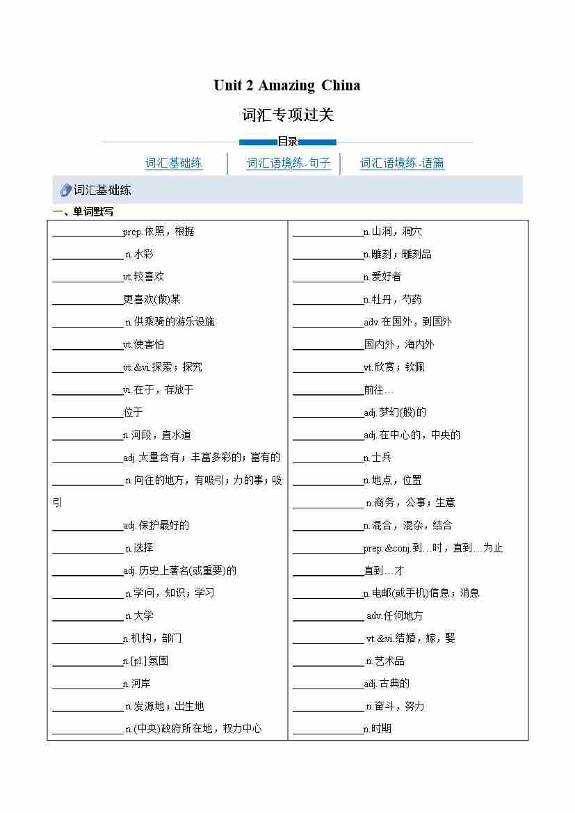 Unit 2 Amazing China(重难词汇精练)(原卷版)