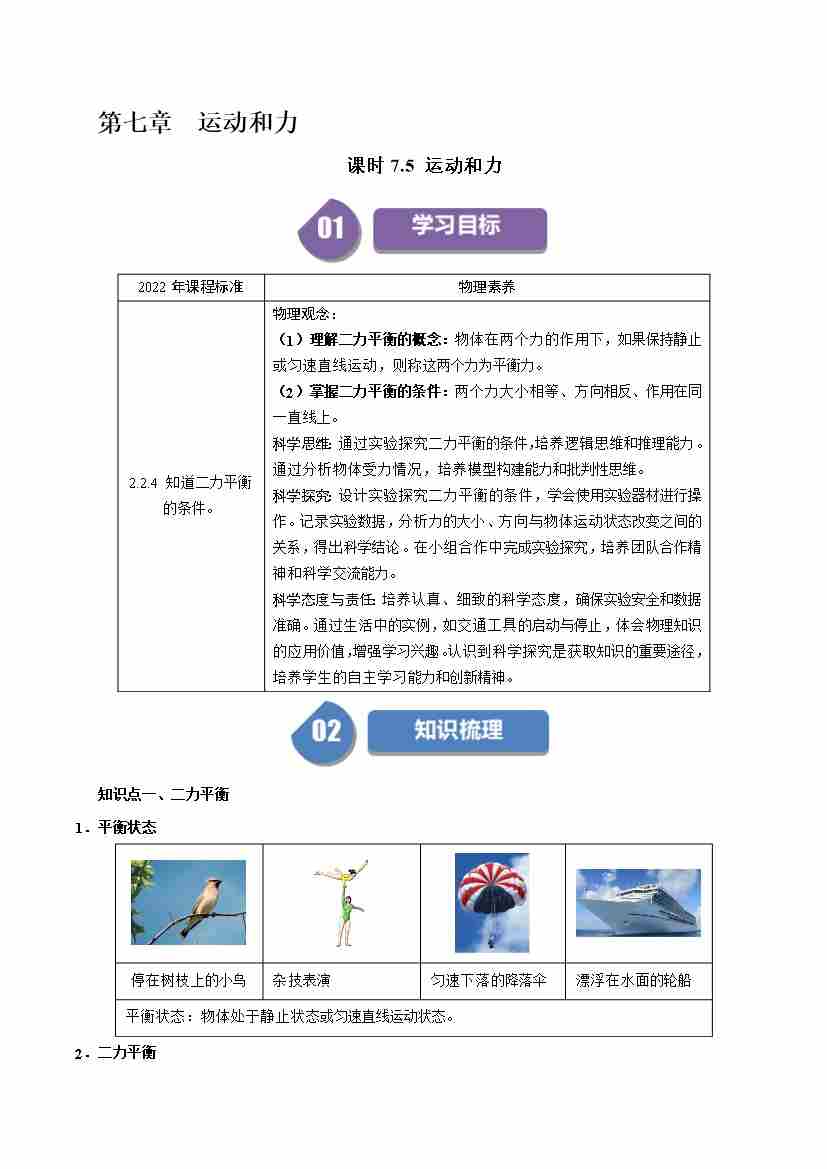 课时7.5 运动和力(学生版)