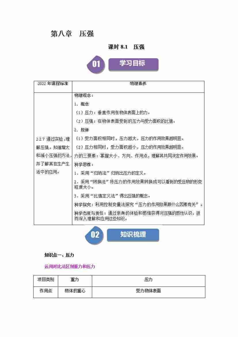 课时8.1 压强(学生版)
