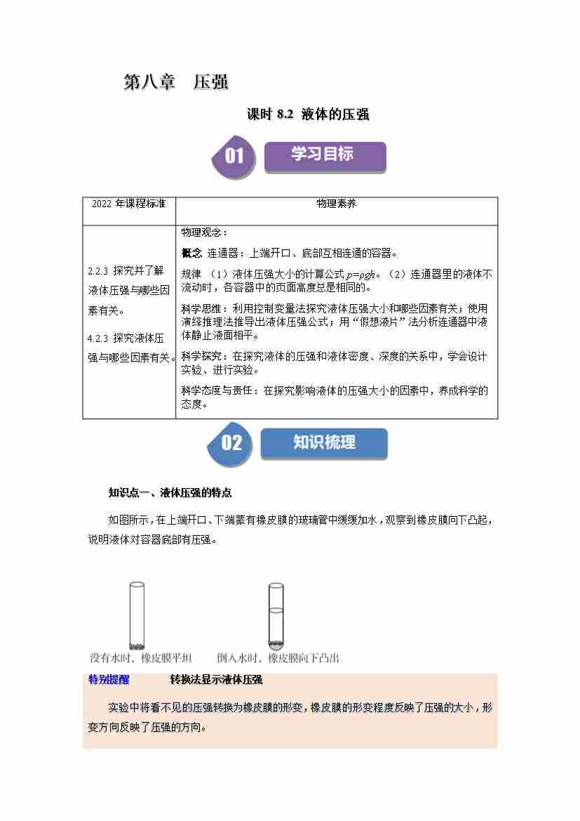 课时8.2 液体的压强(学生版)