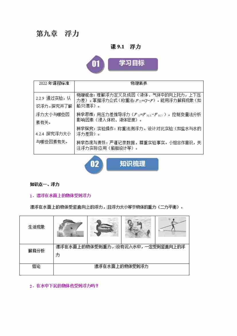 课时9.1 浮力(学生版)