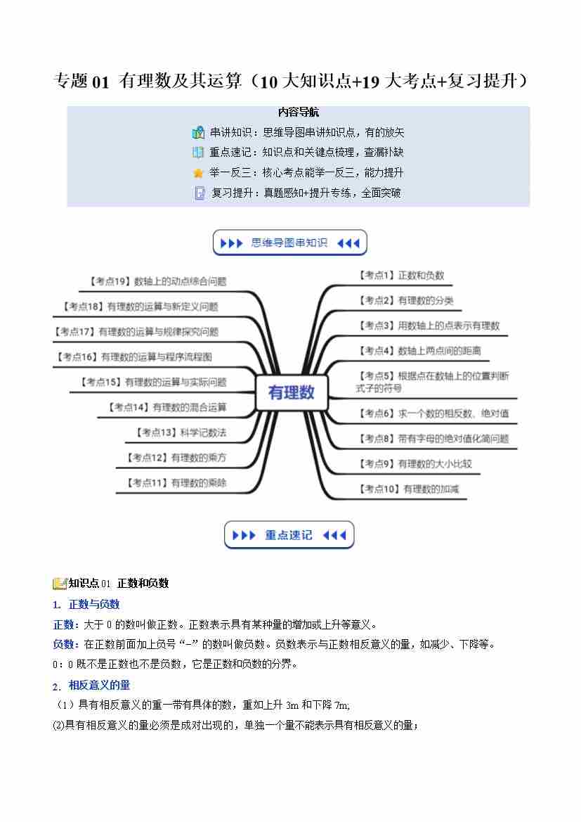 【苏科版】七上数学寒假复习讲义专题01:有理数及其运算(10大知识点19大考点复习提升)(解析版)