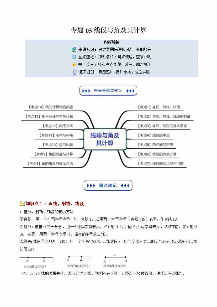 【苏科版】七上数学寒假复习讲义专题05:线段与角及其计算(6大知识点12大考点复习提升)(解析版)