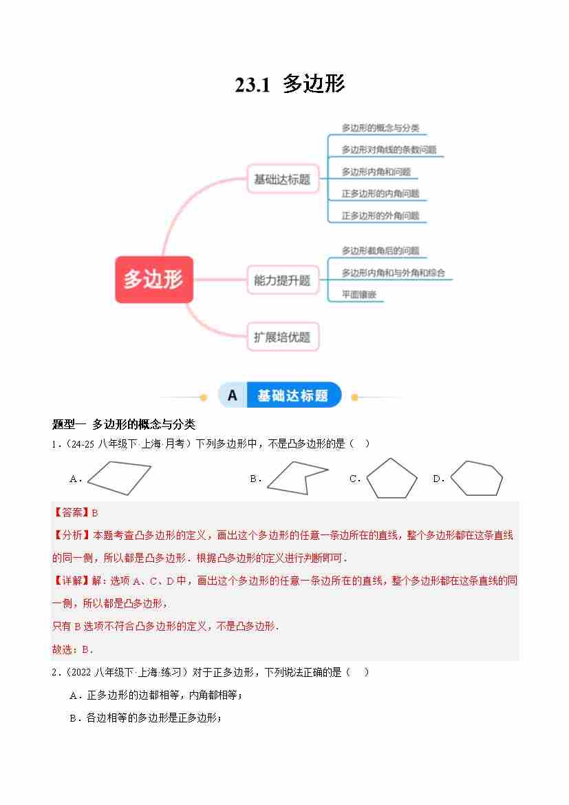 23.1 多边形(题型专练)数学新教材沪教版五四制八年级下册(解析版)