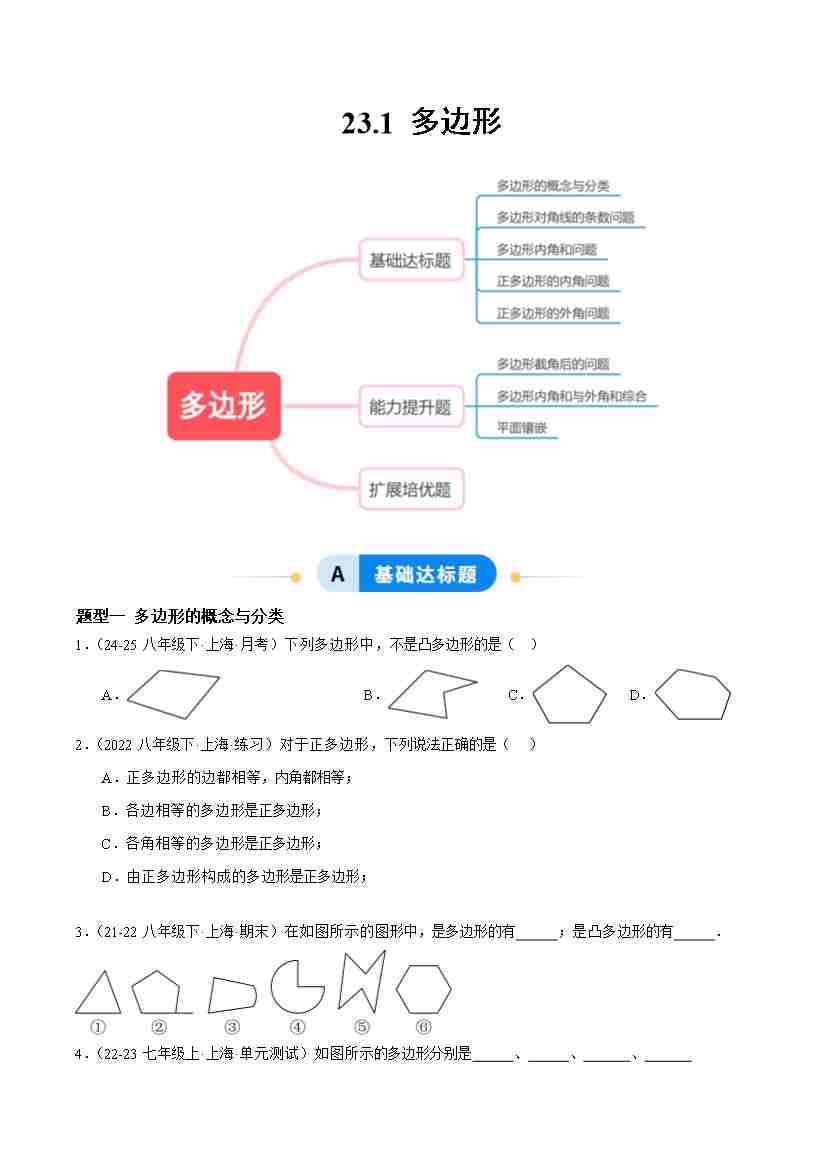 23.1 多边形(题型专练)数学新教材沪教版五四制八年级下册(试题版)