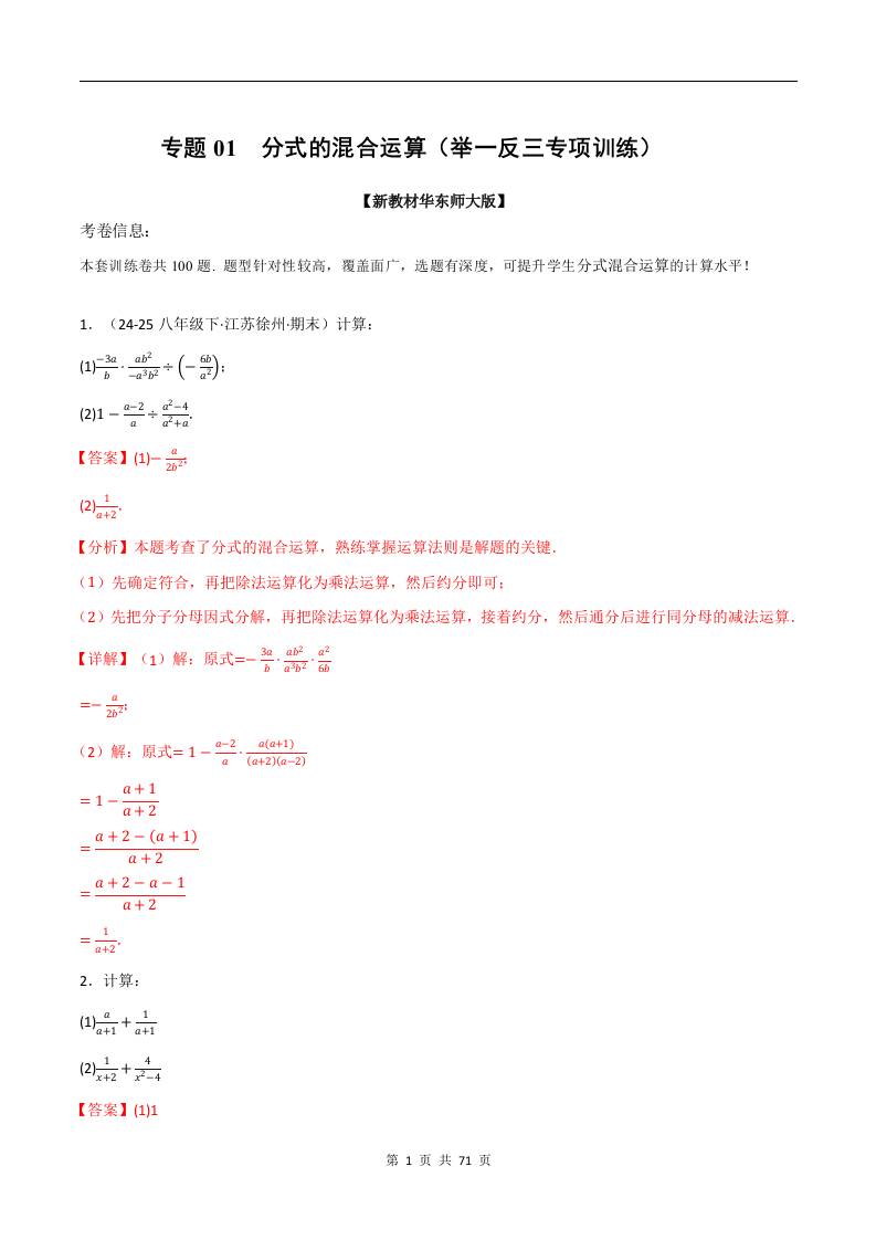 专题01 分式的混合运算(100题)(举一反三专项训练)数学新教材华东师大版八年级下册(解析版)