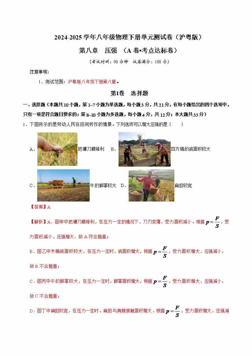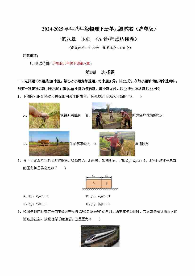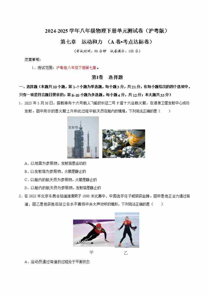 第7章 运动和力-(A卷 达标卷)(学生版)