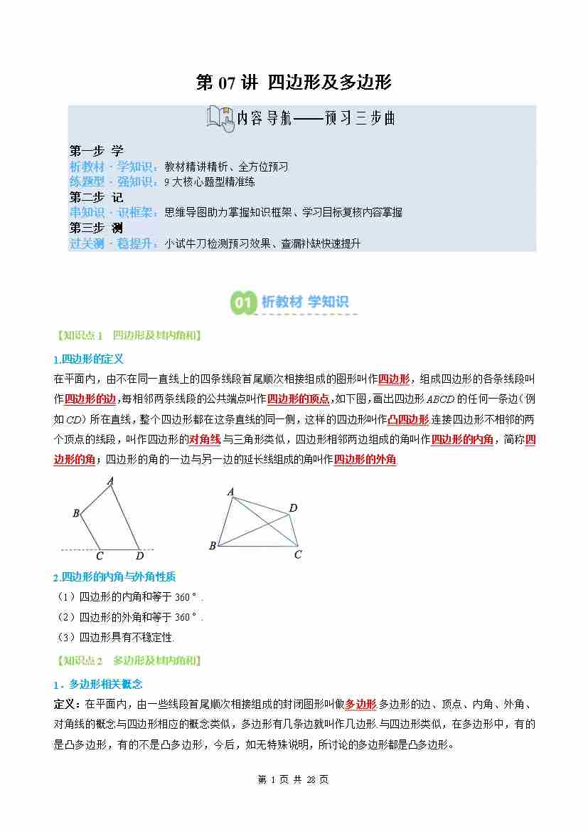 ②寒假预习-第07讲 四边形及多边形(2个知识点9个题型思维导图过关测)(学生版)-2026年八年级数学寒假衔接讲练 (人教版-新教材)
