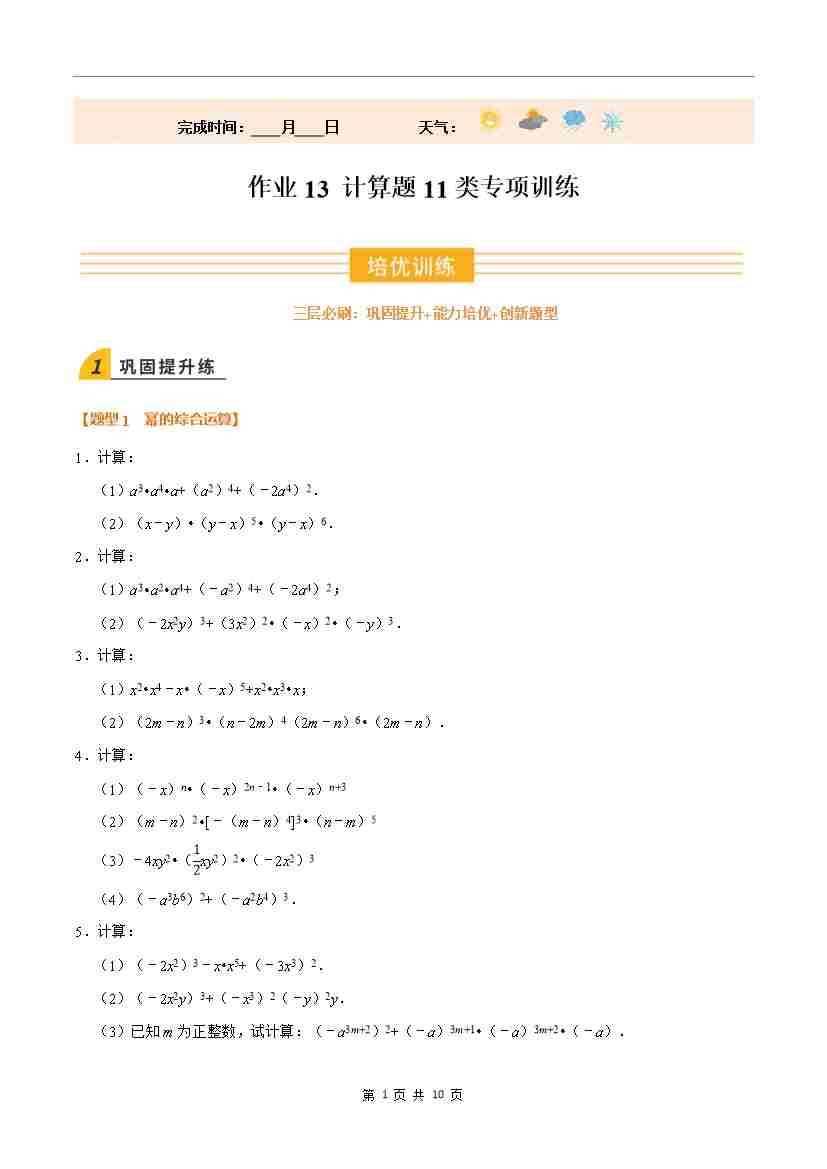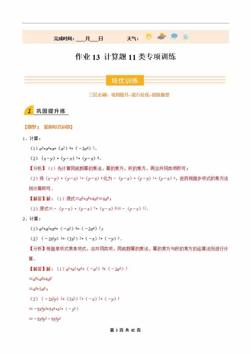 ③寒假培优练-专题13 计算题11类专项训练(巩固培优)(教师版)-2026年八年级数学寒假衔接讲练 (人教版-新教材)