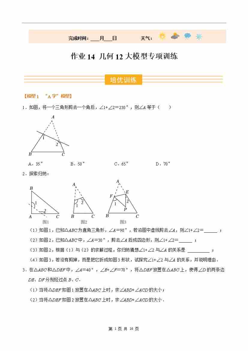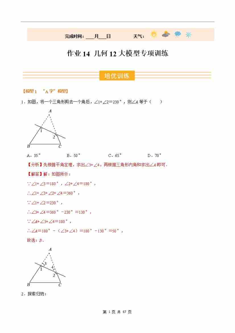 ③寒假培优练-专题14 几何12大模型专项训练(巩固培优)(教师版)-2026年八年级数学寒假衔接讲练 (人教版-新教材)
