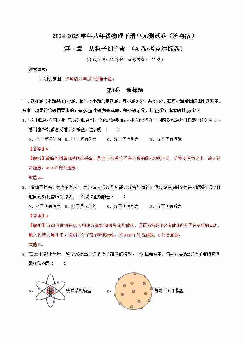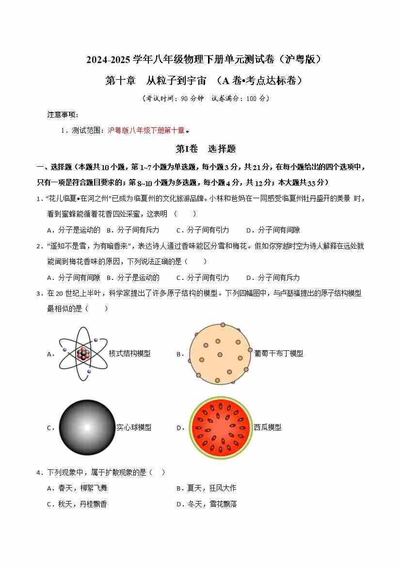 第10章 从粒子到宇宙(A卷 达标卷)(学生版)