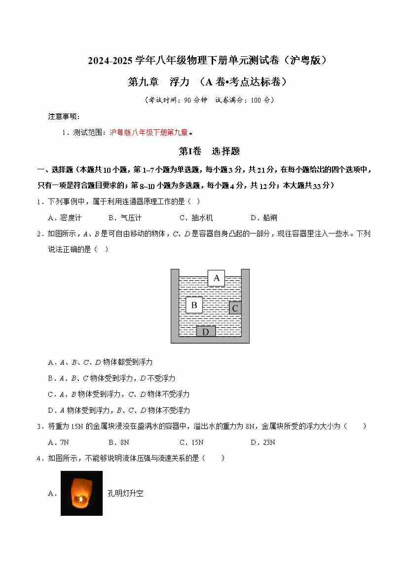 第9章 浮力(A卷 达标卷)(学生版)