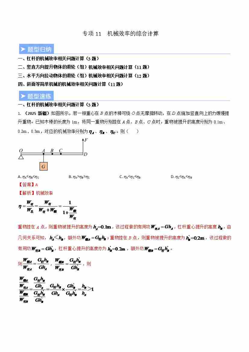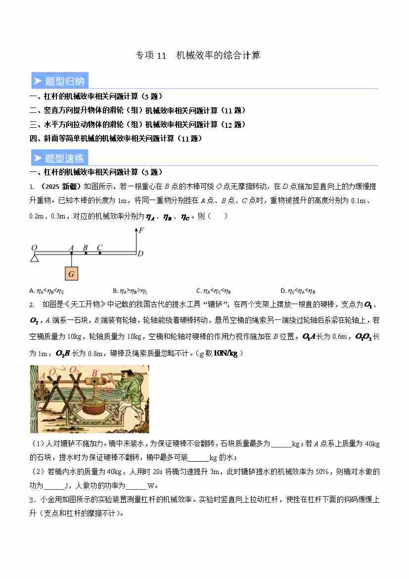专项11 机械效率的综合计算(重难点训练)(原卷版)
