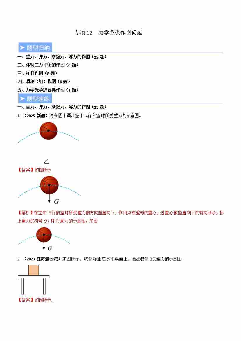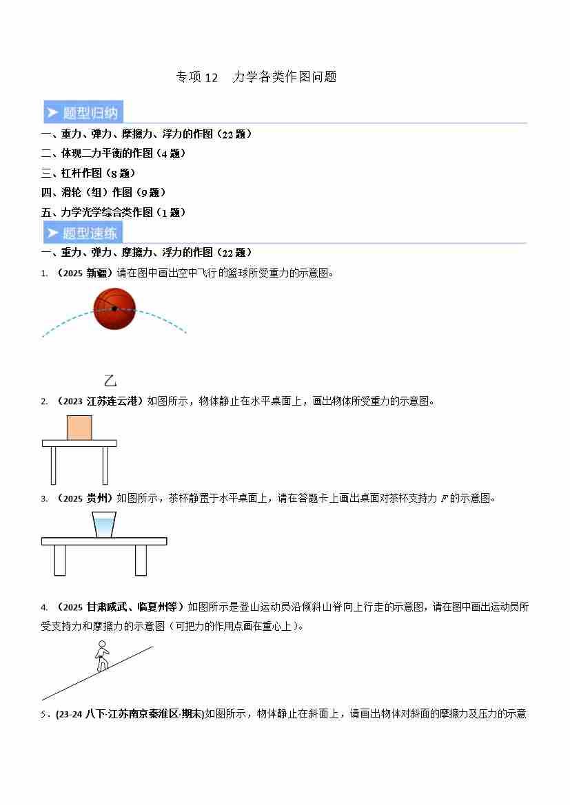 专项12 力学各类作图问题 (重难点训练)(原卷版)