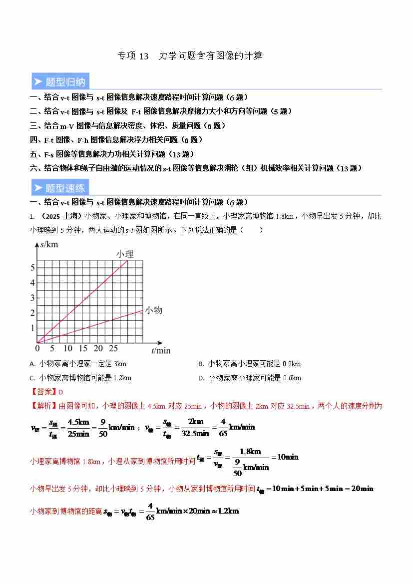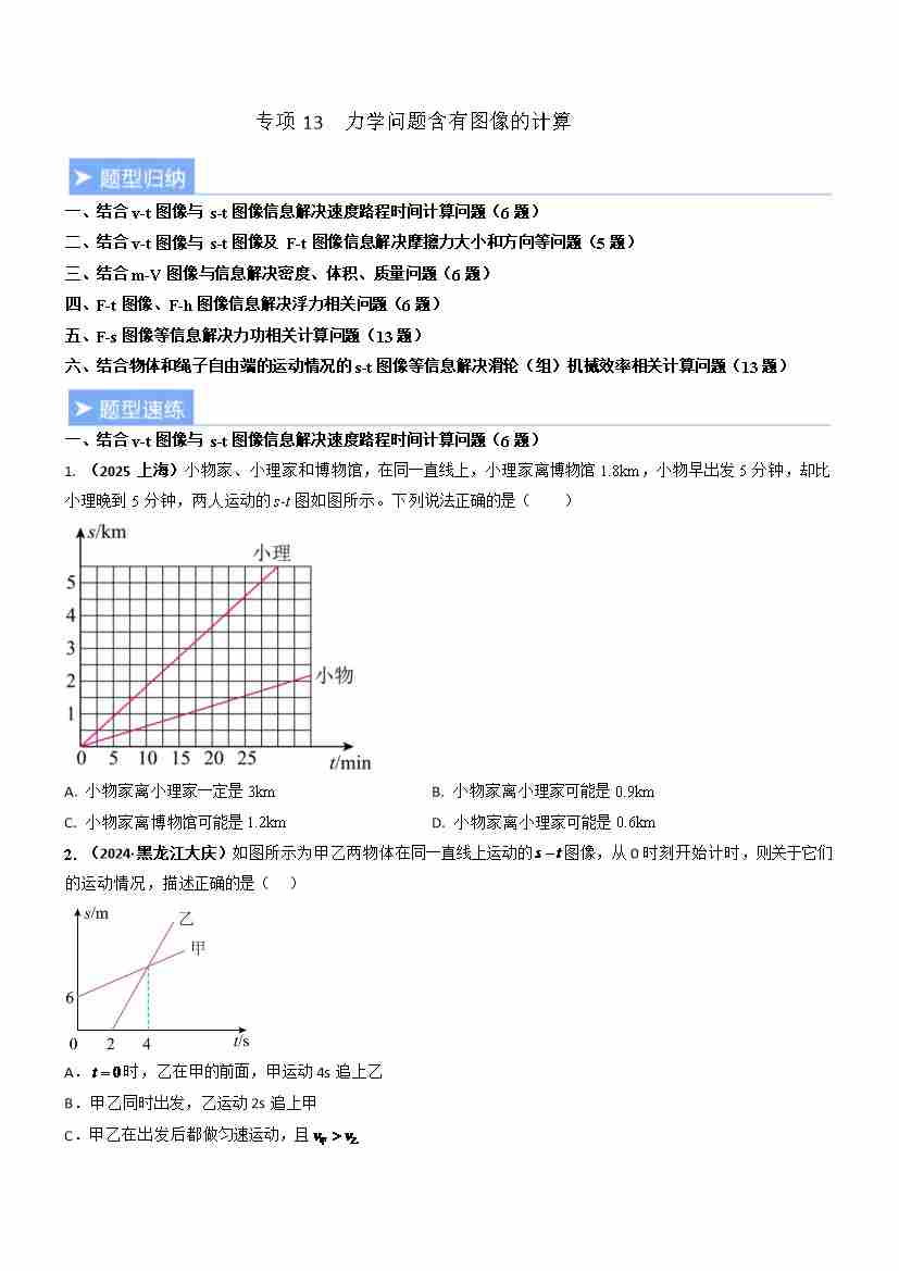 专项13 力学问题含有图像的计算 (重难点训练)(原卷版)
