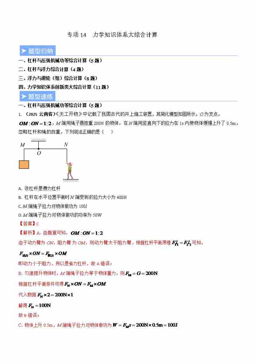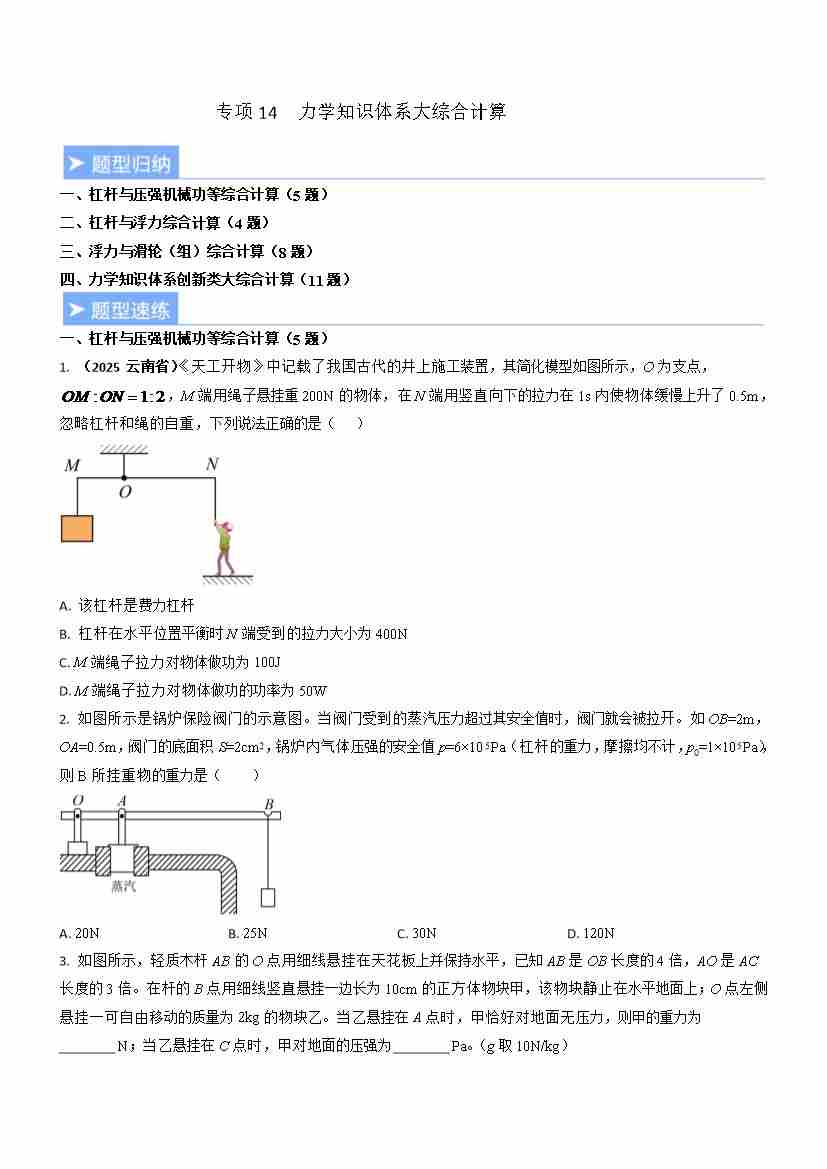 专项14 力学知识体系大综合计算(重难点训练)(原卷版)