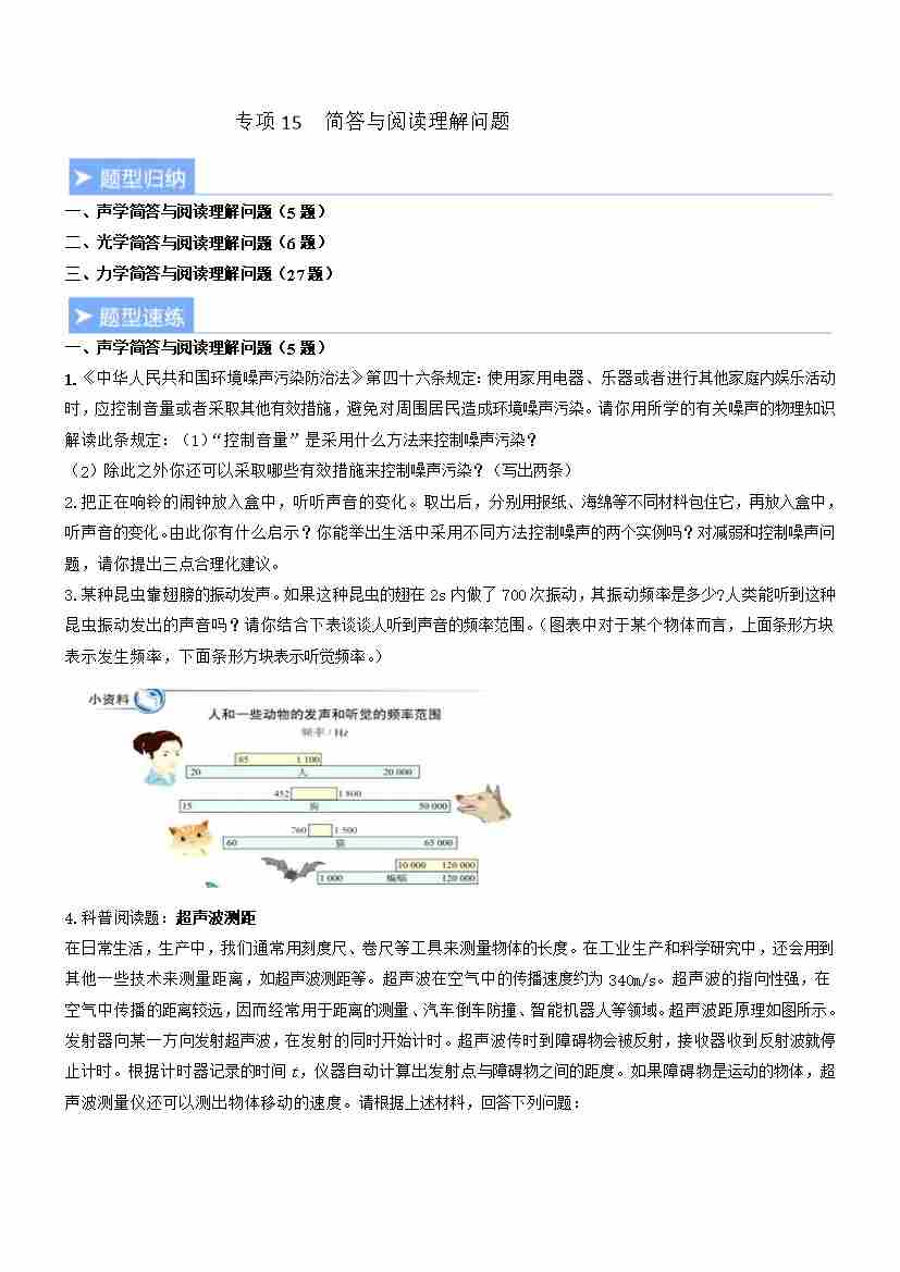 专项15 简答与阅读理解问题(重难点训练)(原卷版)